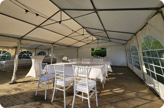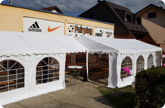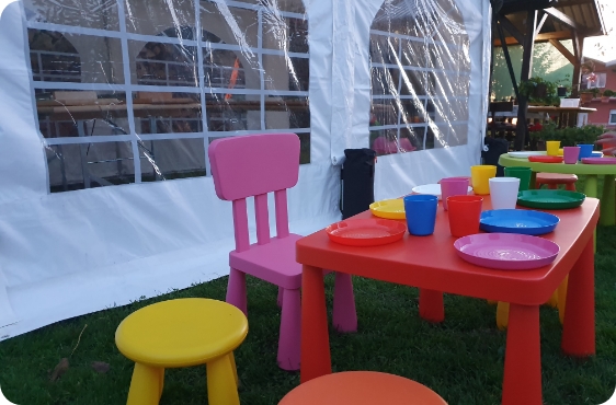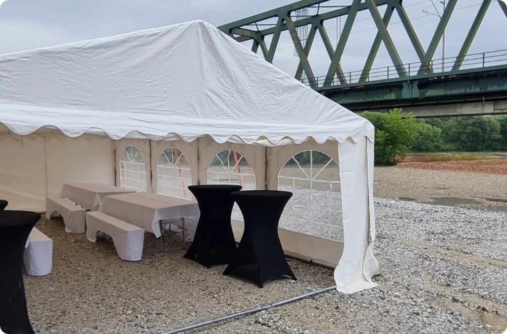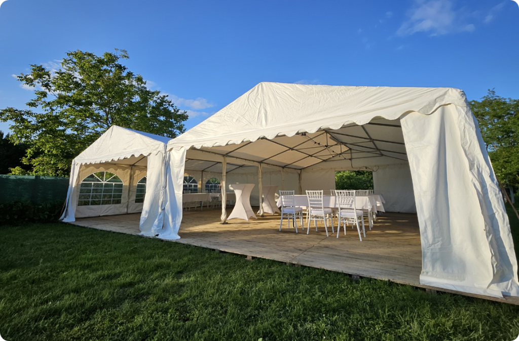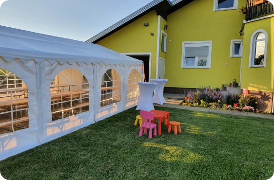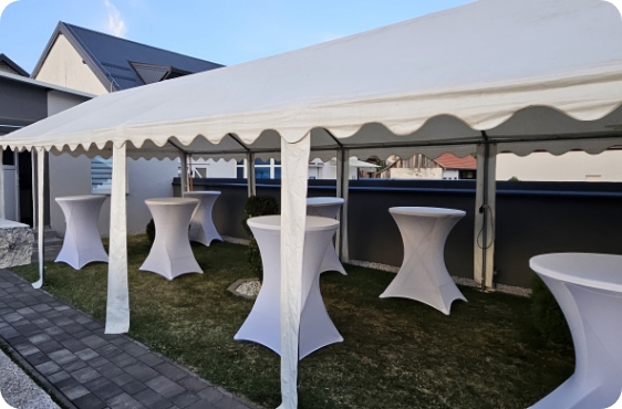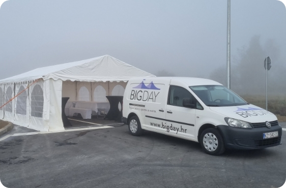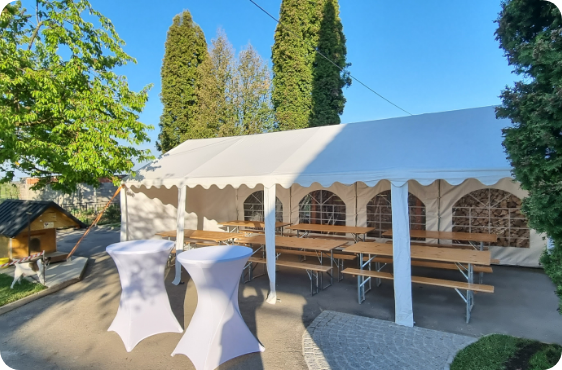 S opremom koju posjedujemo u mogućnosti smo organizirati razne događaje u vanjskim prostorima kao što su rođendani, svadbe, krštenja, krstitke, šatori za sajamske potrebe, razni sportski eventi i sl.