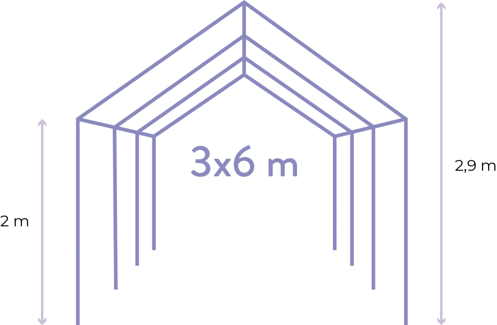 3 metara širine i 6 metara dužine. Ukupne površine od 18 metara kvadratnih.