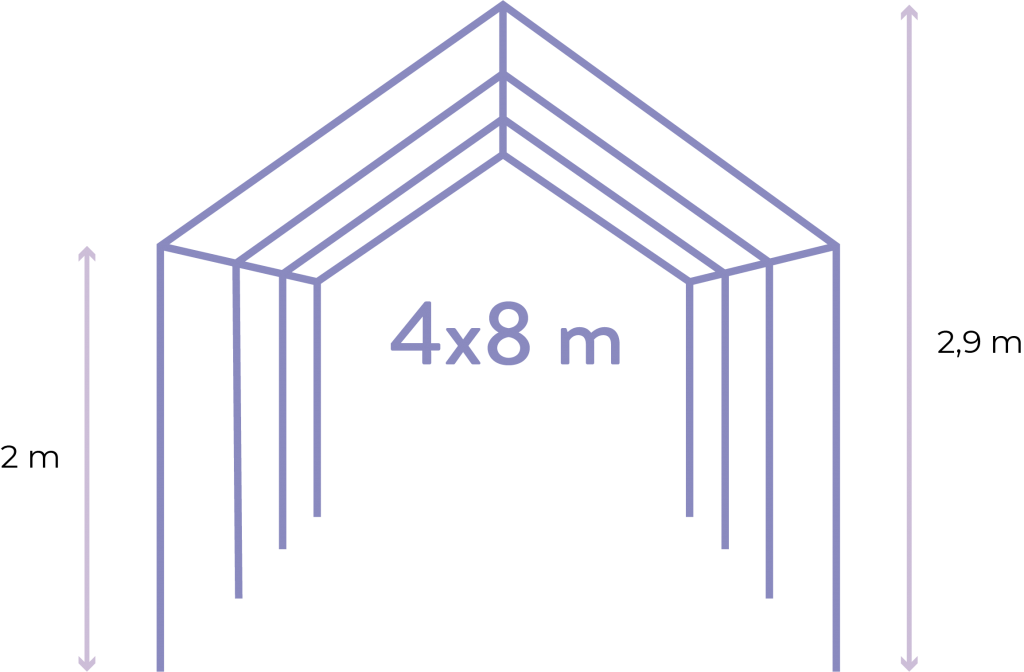 4 metara širine i 8 metara dužine.Ukupne površine od 32 metara kvadratnih.
