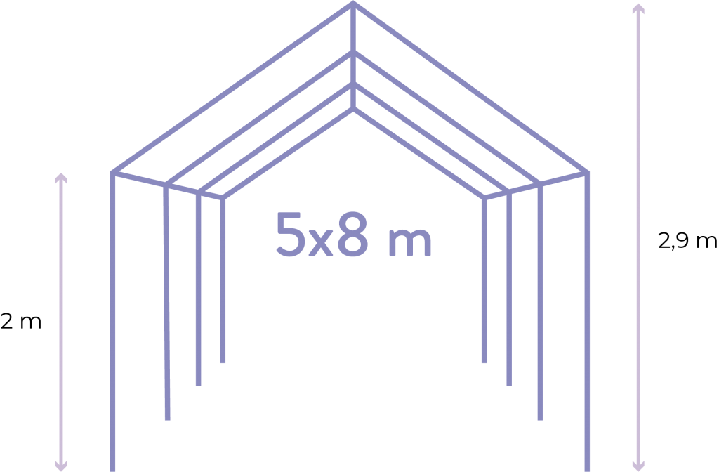 5 metara širine i 8 metara dužine. Ukupne površine od 40 metara kvadratnih.