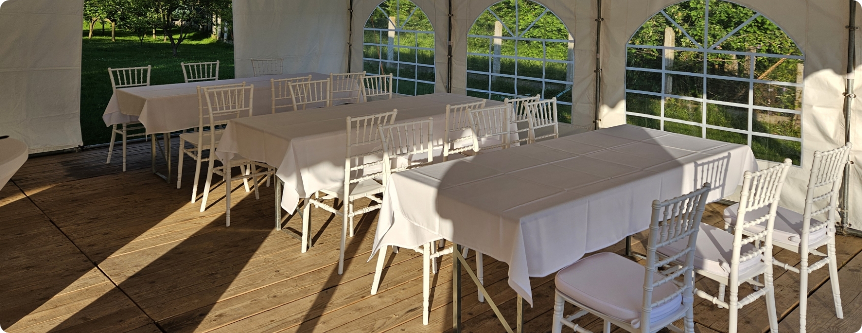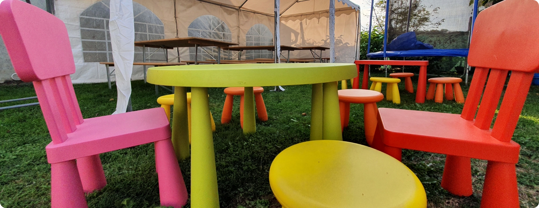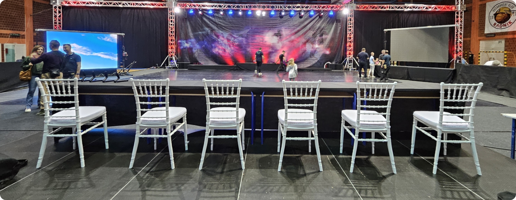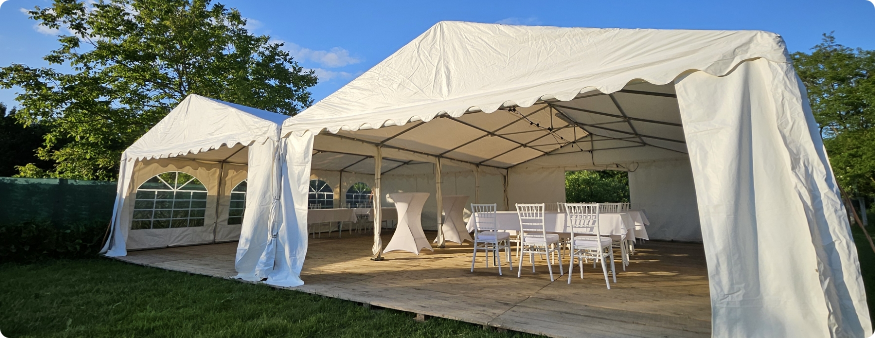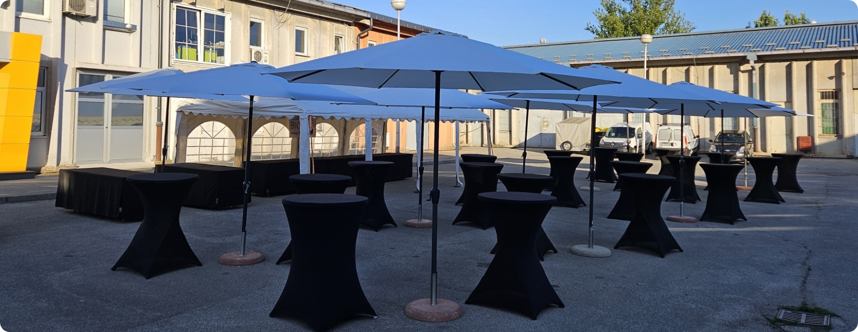 S opremom koju posjedujemo u mogućnosti smo organizirati razne događaje u vanjskim prostorima kao što su rođendani, svadbe, krštenja, krstitke, šatori za sajamske potrebe, razni sportski eventi i sl.