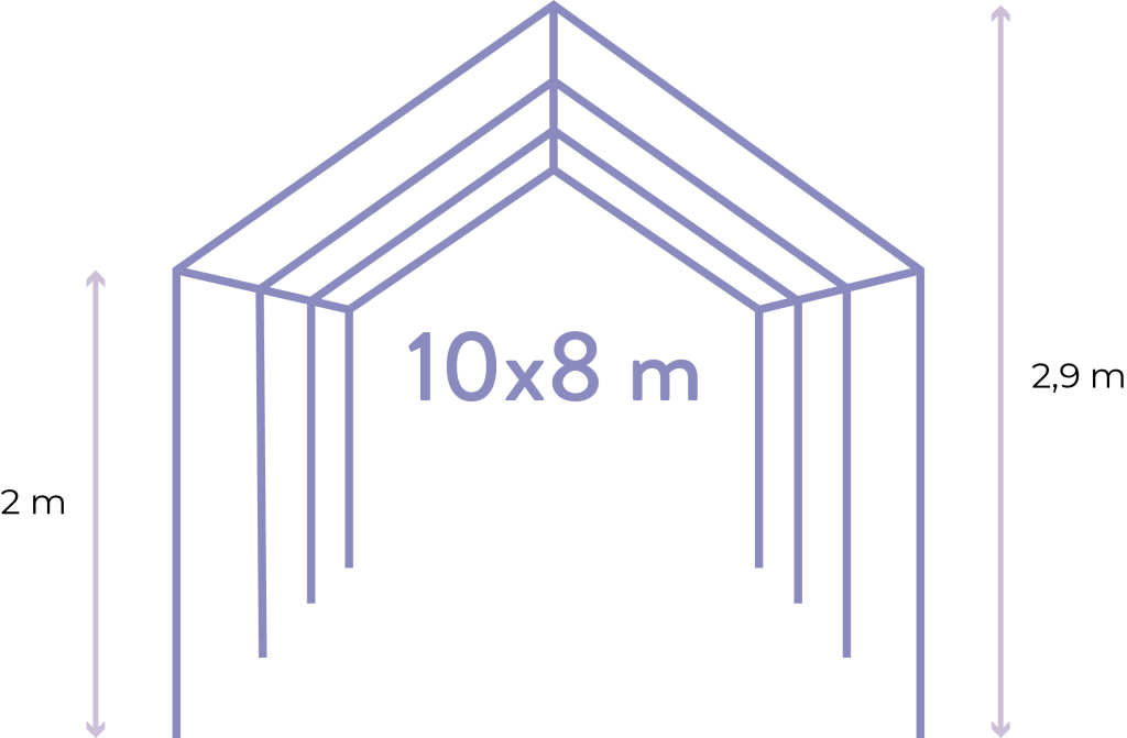10 metara širine i 8 metara dužine. Ukupne površine od 80 metara kvadratnih.
